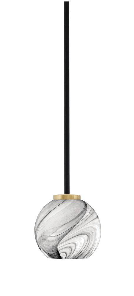 Sandia 1 Light Stem Mini Pendant, Matte Black & New Age Brass Finish, 5.75 Onyx Swirl Glass