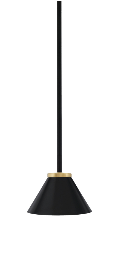 Sandia 1 Light Stem Mini Pendant, Matte Black & New Age Brass Finish, 7 Matte Black Cone Metal Shade