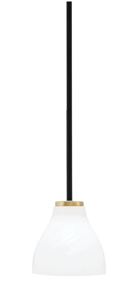 Sandia 1 Light Stem Mini Pendant, Matte Black & New Age Brass Finish, 6.25 White Marble Glass