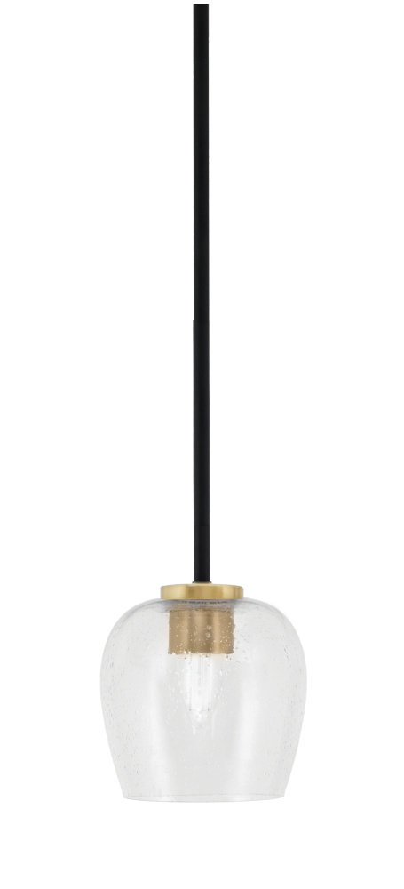 Sandia 1 Light Stem Mini Pendant, Matte Black & New Age Brass Finish, 6 Clear Bubble Glass