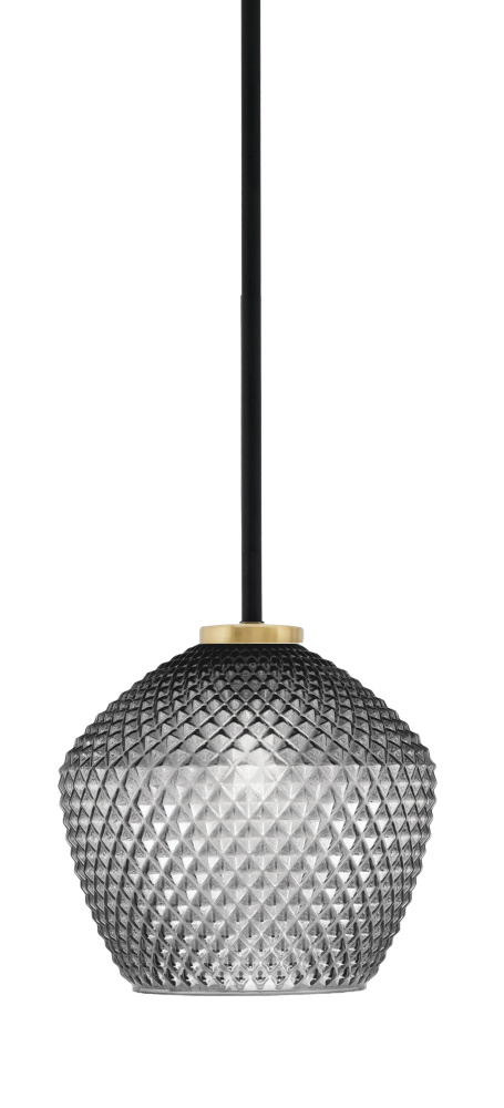 Sandia 1 Light Stem Mini Pendant, Matte Black & New Age Brass Finish, 9 Smoke Textured Glass