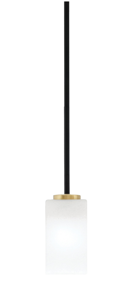 Sandia 1 Light Stem Mini Pendant, Matte Black & New Age Brass Finish, 3.5 Square White Marble Glass