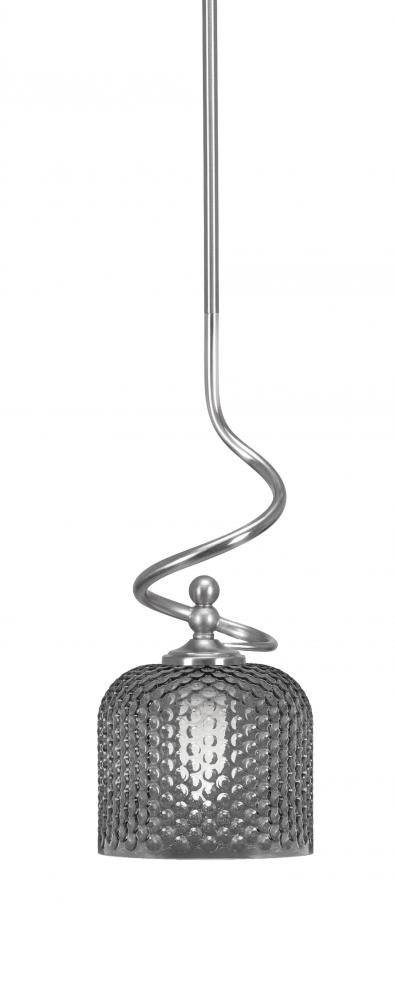 Capri Stem Hung Mini Pendant Shown In Brushed Nickel Finish With 6 Smoke Textured Glass