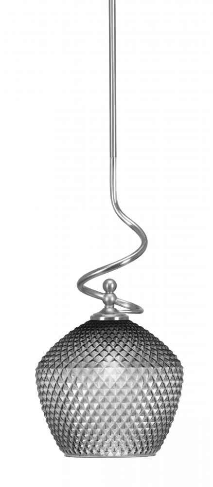 Capri Stem Hung Mini Pendant Shown In Brushed Nickel Finish With 9 Smoke Textured Glass