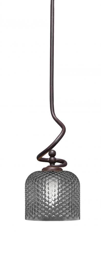 Capri Stem Hung Mini Pendant Shown In Dark Granite Finish With 6 Smoke Textured Glass