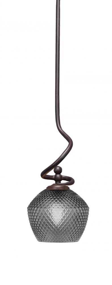 Capri Stem Hung Mini Pendant Shown In Dark Granite Finish With 6 Smoke Textured Glass