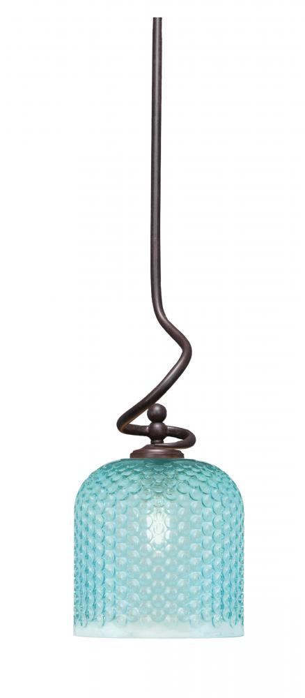 Capri Stem Hung Mini Pendant Shown In Dark Granite Finish With 7 Turquoise Textured Glass