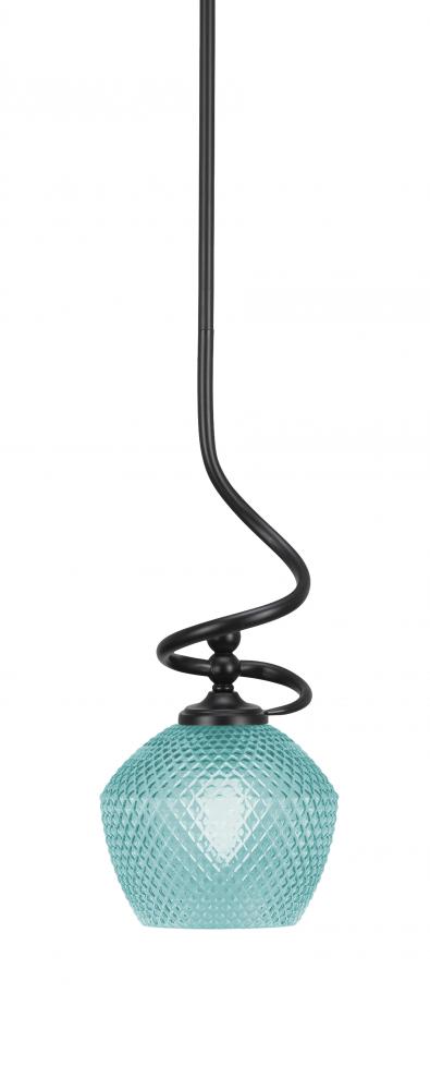 Capri Stem Hung Mini Pendant Shown In Matte Black Finish With 6 Turquoise Textured Glass