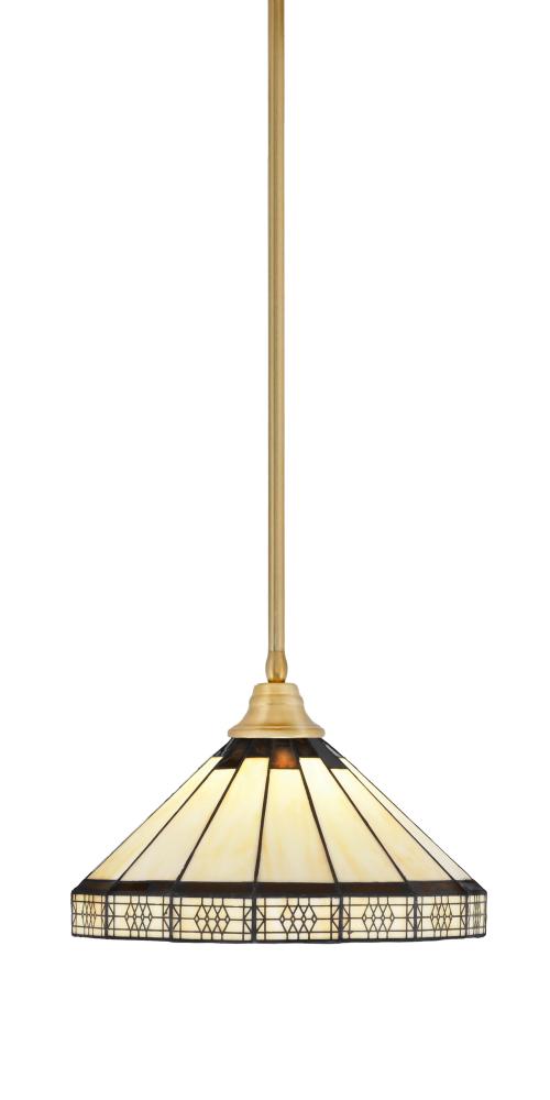 Toltec Lighting 26-NAB-964 Stem Hung Pendant, New Age Brass Finish, 15 Honey & Brown Mission Art Glass