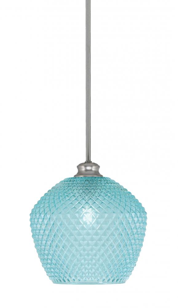 Toltec Lighting 72-BN-4925 Zola Stem Hung Pendant, Brushed Nickel Finish, 9 Turquoise Textured Glass