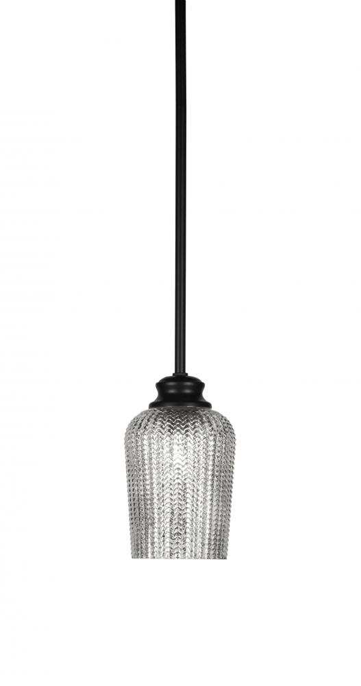 Toltec Lighting 72-MB-4253 Cordova Stem Hung Pendant With Hang Straight Swivel Shown In Matte Black Finish With 5 Silver Textured Glass