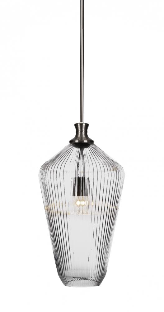 Toltec Lighting 73-BN-4650 Carina Stem Hung Pendant With Hang Straight Swivel Shown Brushed Nickel Finish With 11 Clear Ribbed Glass