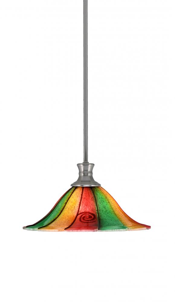 Toltec Lighting 76-BN-764 Stem Hung Pendant With Hang Straight Swivel Shown In Brushed Nickel Finish With 14 Mardi Gras Glass