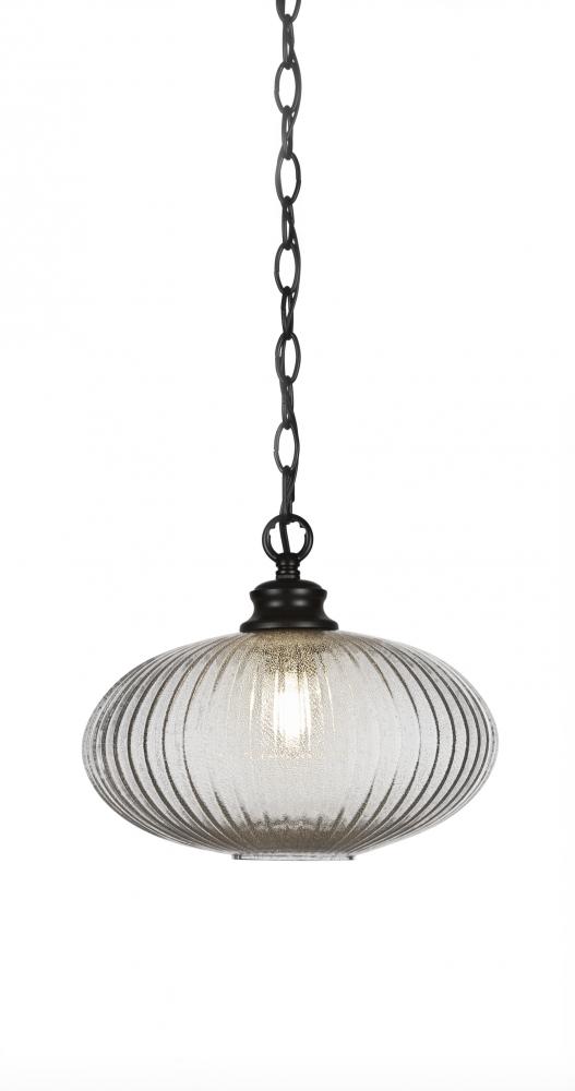 Toltec Lighting 92-MB-4658 Carina Chain Hung Pendant Shown In Matte Black Finish With 12 Micro Bubble Ribbed Glass