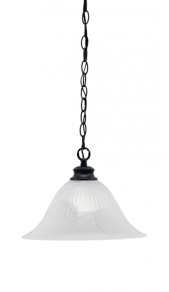 Toltec Lighting 92-MB-5831 Chain Hung Pendant Shown In Matte Black Finish With 14 White Alabaster Swirl Glass
