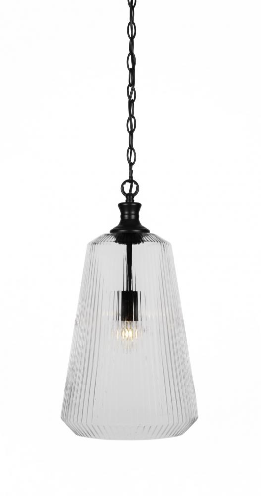 Toltec Lighting 93-MB-4640 Carina Chain Hung Pendant Shown In Matte Black Finish With 11 Clear Ribbed Glass