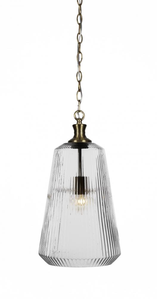 Toltec Lighting 93-NAB-4640 Carina Chain Hung Pendant Shown In New Age Brass Finish With 11 Clear Ribbed Glass