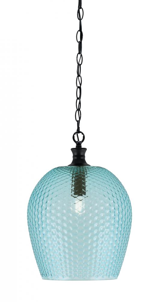 Toltec Lighting 95-MB-4205 Zola Chain Hung Pendant, Matte Black Finish, 12 Turquoise Textured Glass