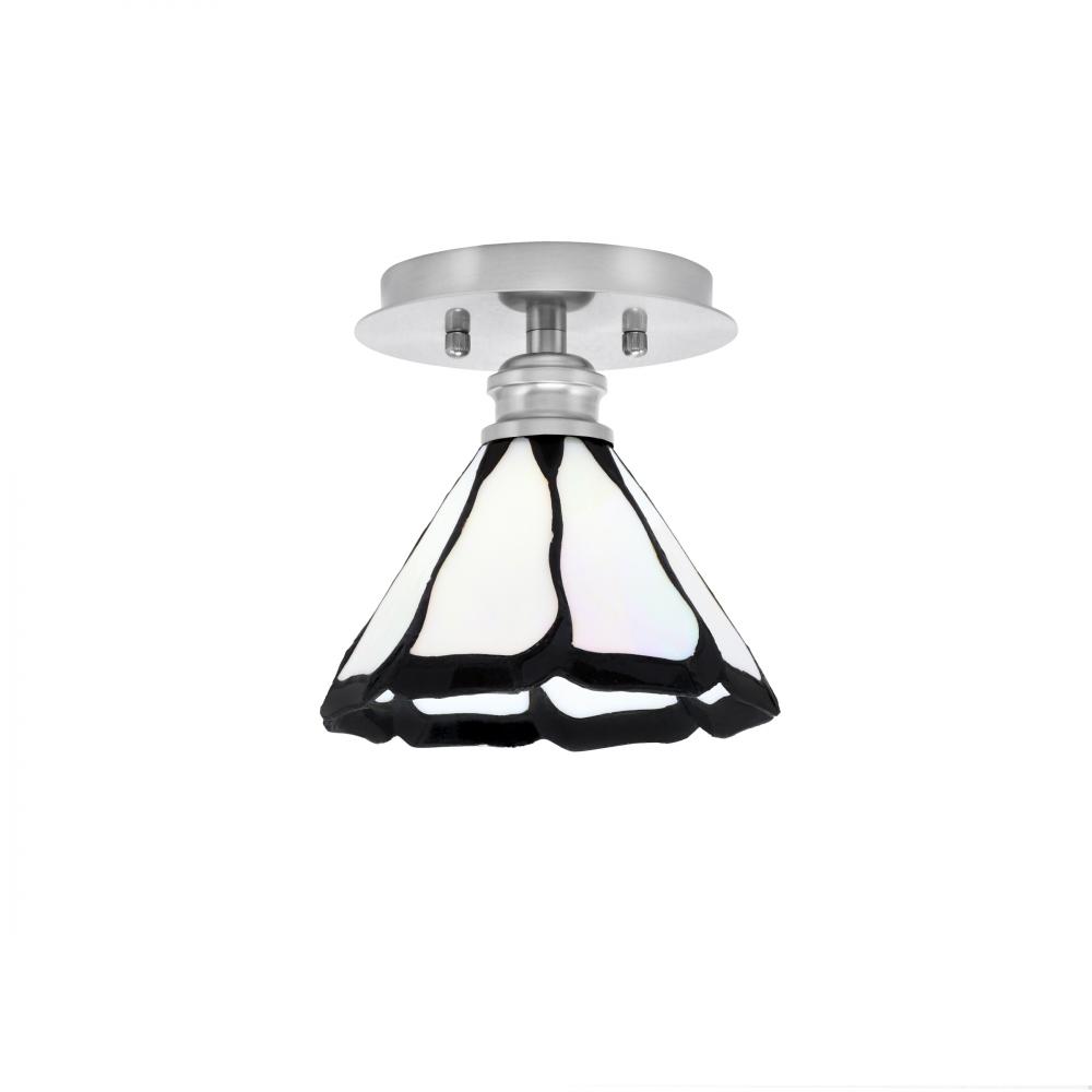 Toltec Lighting 1160-BN-9125 Edge 1 Light Semi-Flush, Brushed Nickel Finish, 7 Pearl & Black Flair Art Glass