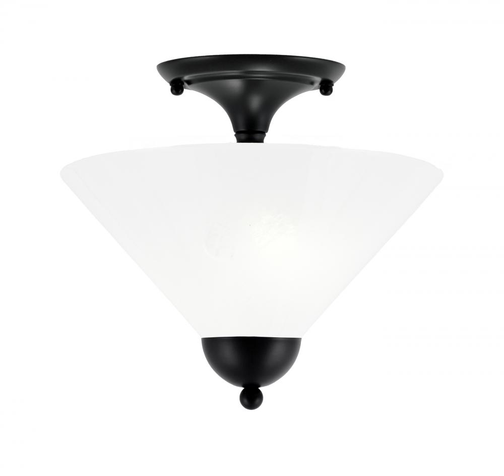 Toltec Lighting 120-MB-2121 Semi-Flush, 2 Bulbs, Matte Black Finish, 12 White Marble Glass