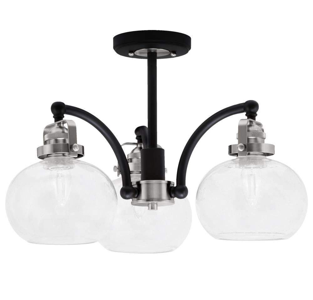Toltec Lighting 1947-MBBN-202 Easton 3 Light Semi-Flush Shown In Matte Black & Brushed Nickel Finish With 7 Clear Bubble Glass