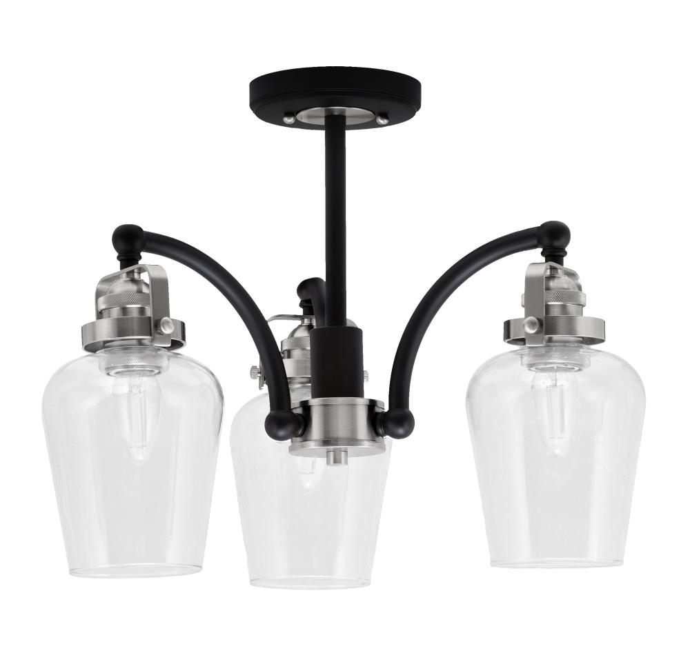 Toltec Lighting 1947-MBBN-210 Easton 3 Light Semi-Flush Shown In Matte Black & Brushed Nickel Finish With 5 Clear Bubble Glass