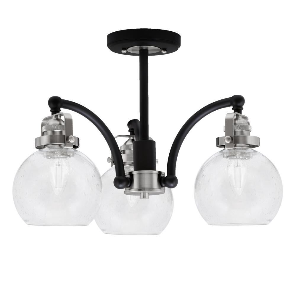 Toltec Lighting 1947-MBBN-4100 Easton 3 Light Semi-Flush Shown In Matte Black & Brushed Nickel Finish With 5.75 Clear Bubble Glass