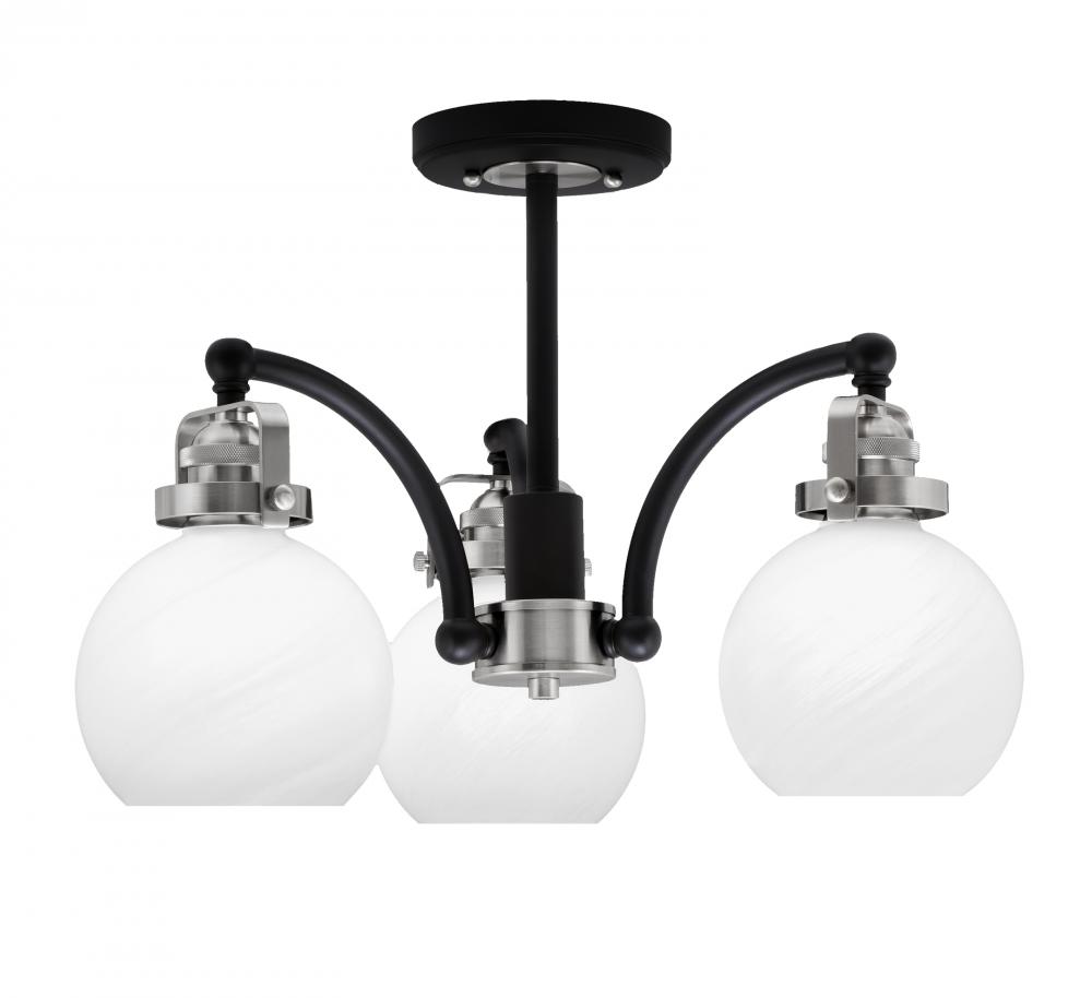 Toltec Lighting 1947-MBBN-4101 Easton 3 Light Semi-Flush Shown In Matte Black & Brushed Nickel Finish With 5.75 White Marble Glass