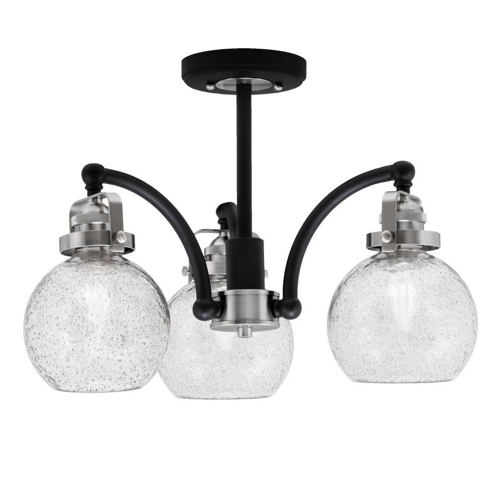 Toltec Lighting 1947-MBBN-4102 Easton 3 Light Semi-Flush Shown In Matte Black & Brushed Nickel Finish With 5.75 Smoke Bubble Glass