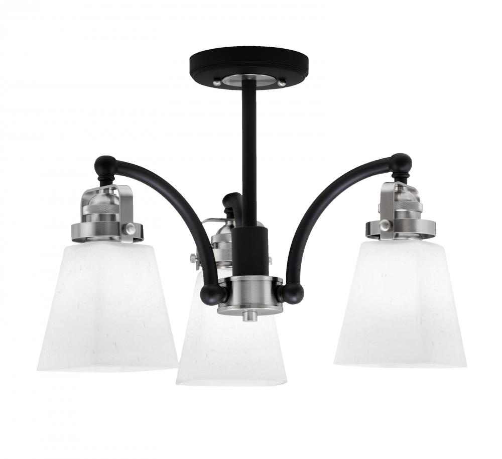 Toltec Lighting 1947-MBBN-460 Easton 3 Light Semi-Flush Shown In Matte Black & Brushed Nickel Finish With 4.5 Square White Muslin Glass