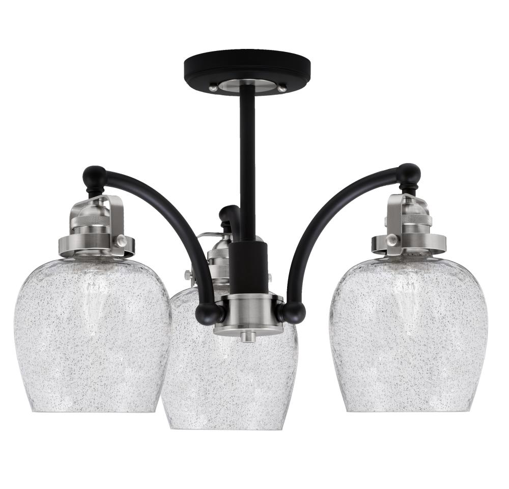 Toltec Lighting 1947-MBBN-4812 Easton 3 Light Semi-Flush Shown In Matte Black & Brushed Nickel Finish With 6 Smoke Bubble Glass