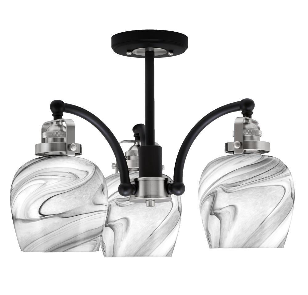 Toltec Lighting 1947-MBBN-4819 Easton 3 Light Semi-Flush Shown In Matte Black & Brushed Nickel Finish With 6 Onyx Swirl Glass