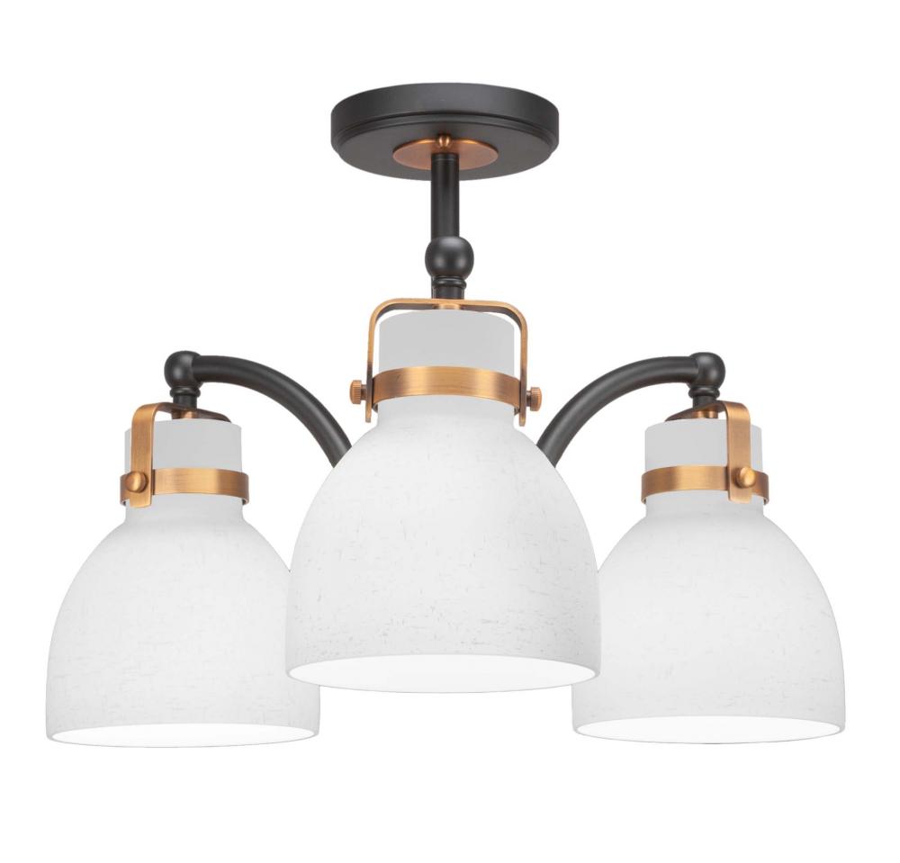 Toltec Lighting 1947-MBBR-4111 Easton 3 Light Semi-Flush Shown In Matte Black & Brass Finish With 6 White Muslin Glass