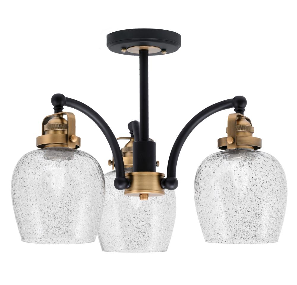 Toltec Lighting 1947-MBBR-4812 Easton 3 Light Semi-Flush Shown In Matte Black & Brass Finish With 6 Smoke Bubble Glass