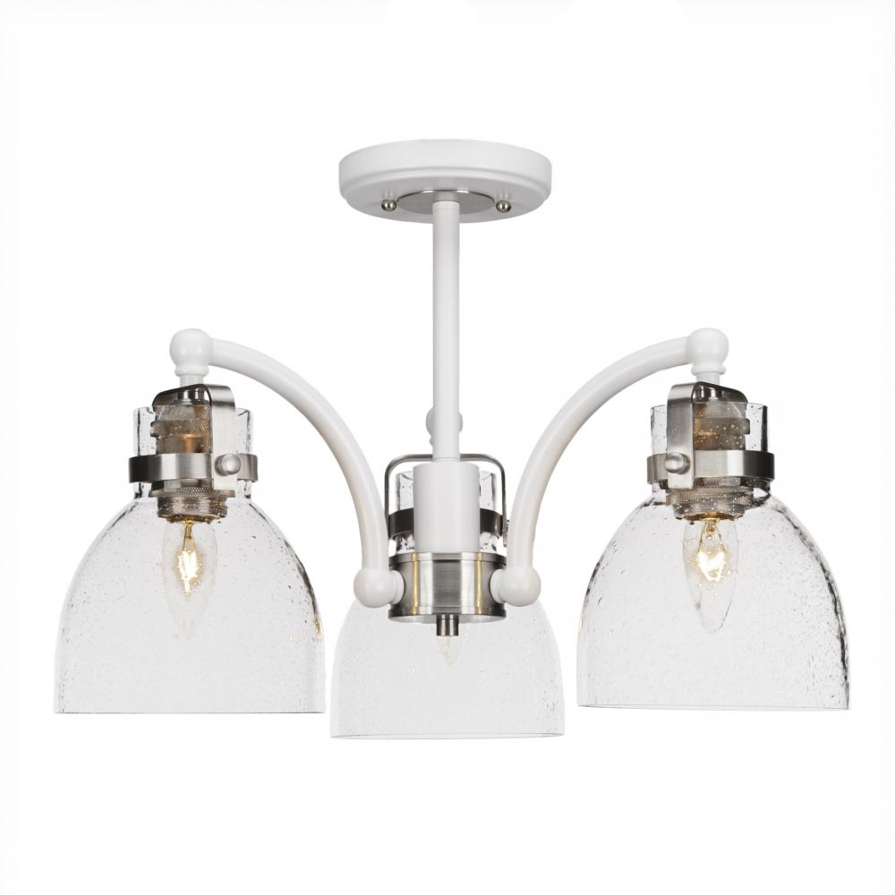 Toltec Lighting 1947-WHBN-4110 Easton 3 Light Semi-Flush Shown In White & Brushed Nickel Finish With 6? Clear Bubble Glass