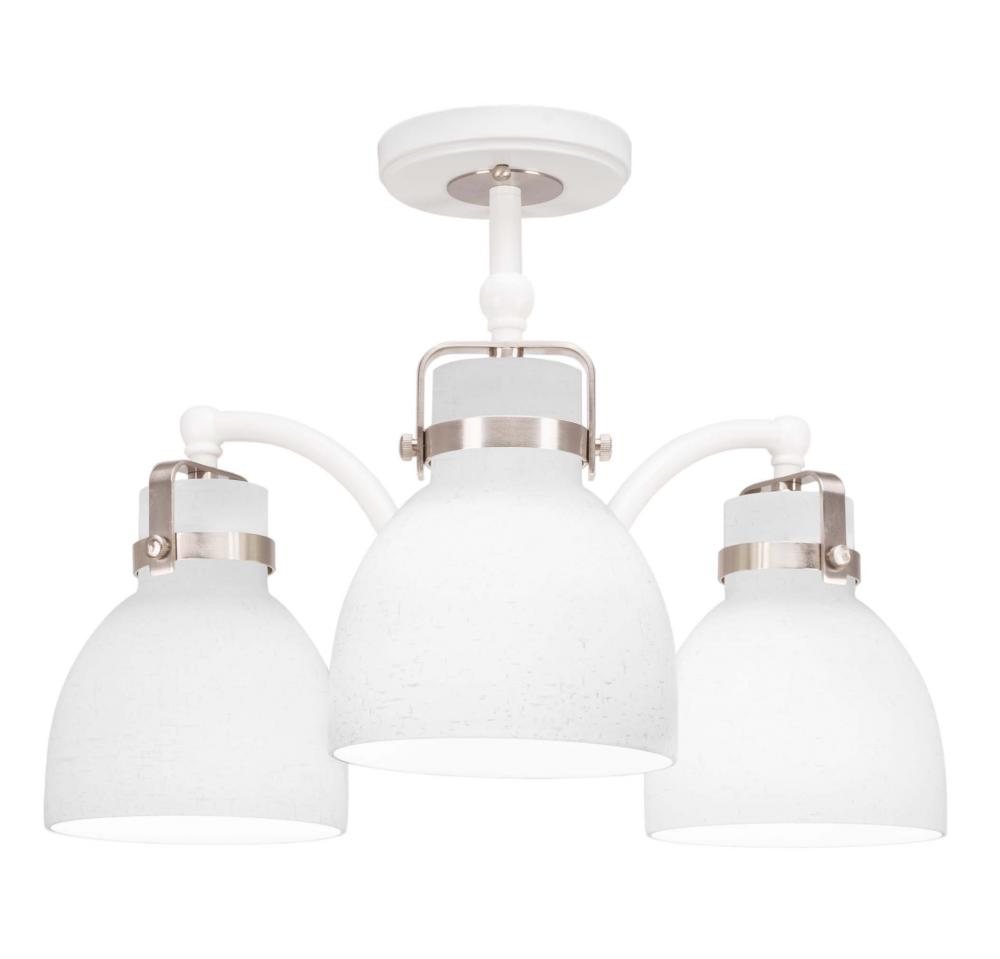 Toltec Lighting 1947-WHBN-4111 Easton 3 Light Semi-Flush Shown In White & Brushed Nickel Finish With 6 White Muslin Glass