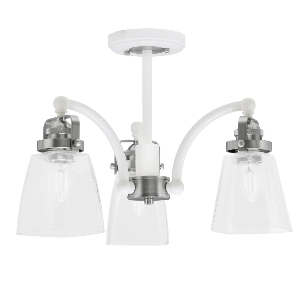 Toltec Lighting 1947-WHBN-461 Easton 3 Light Semi-Flush Shown In White & Brushed Nickel Finish With 4.5 Square Clear Bubble Glass