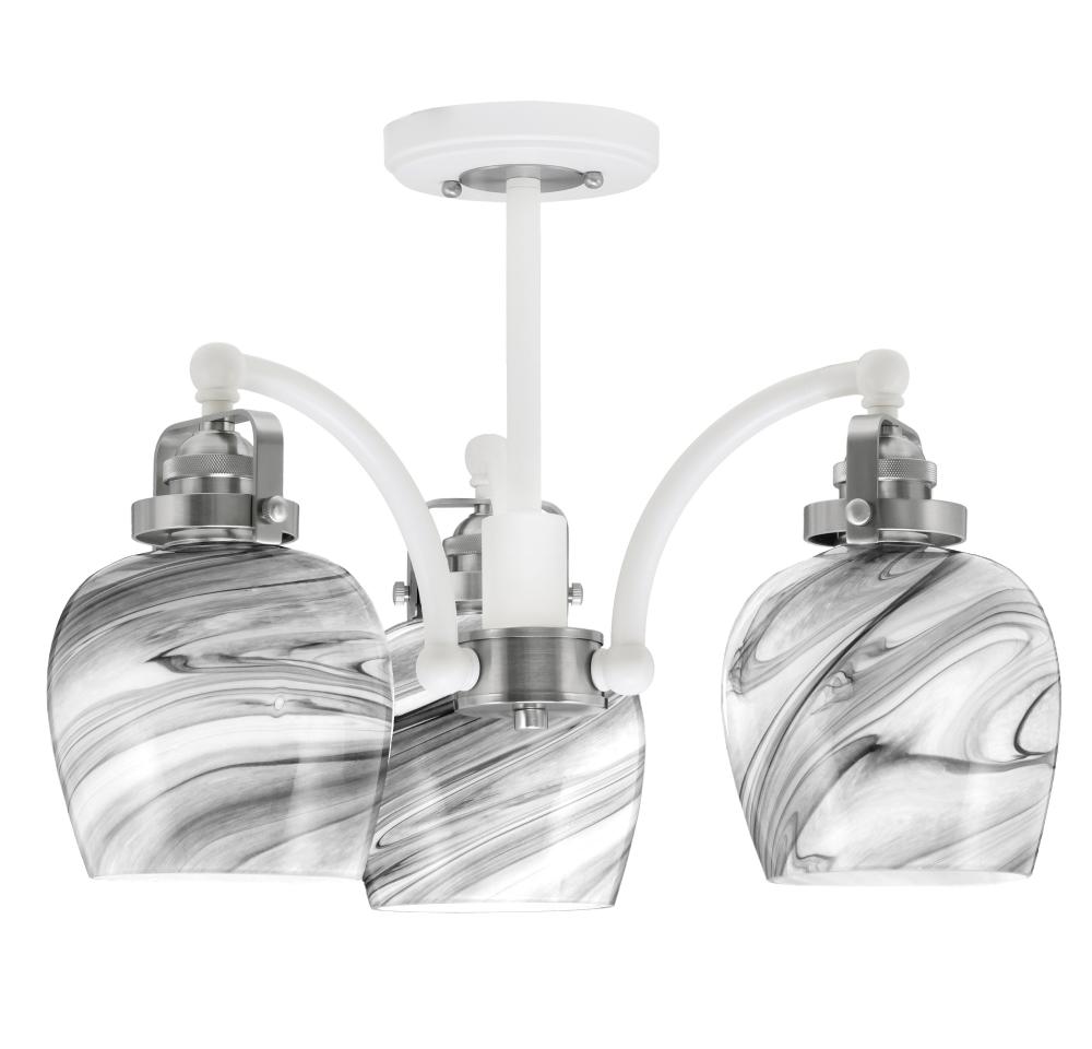 Toltec Lighting 1947-WHBN-4819 Easton 3 Light Semi-Flush Shown In White & Brushed Nickel Finish With 6 Onyx Swirl Glass