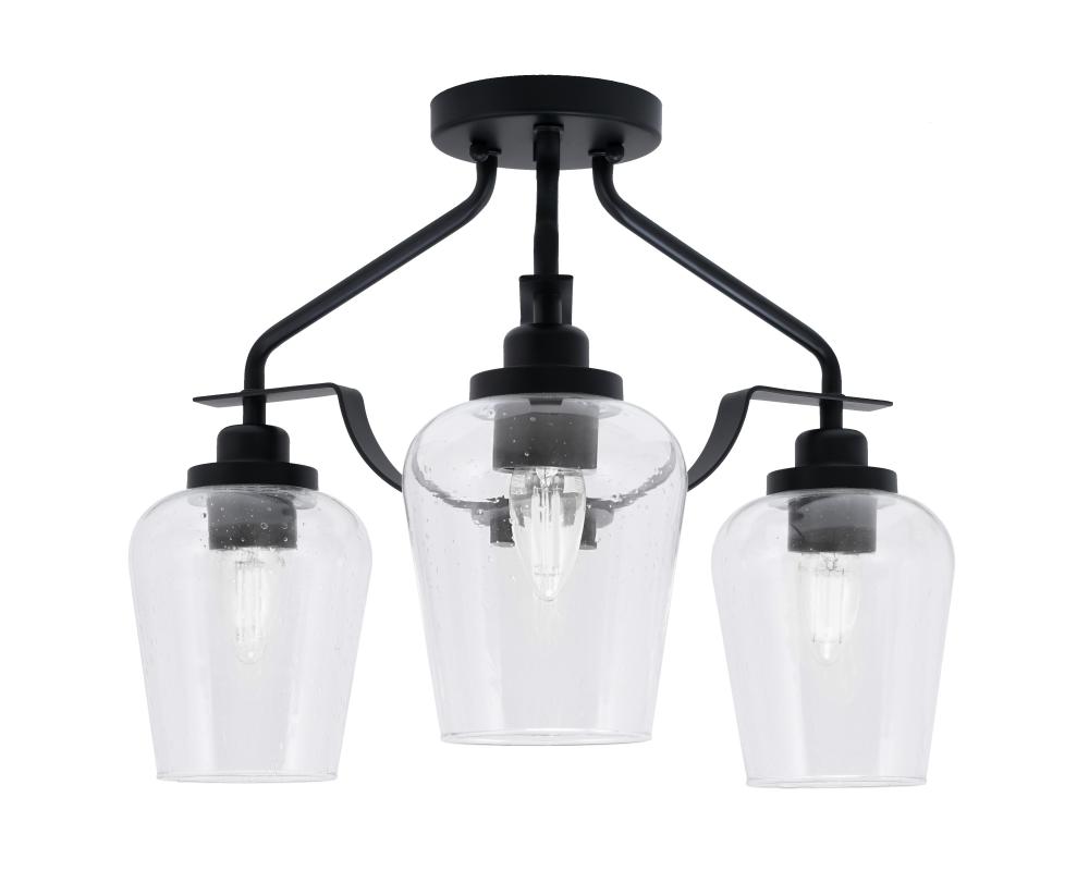 Odyssey 3 Light Semi Flush Mount In Matte Black Finish With 5? Clear Bubble Glass