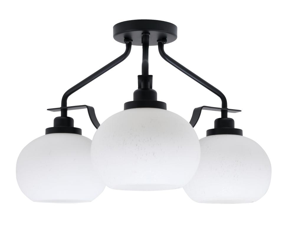 Odyssey 3 Light Semi Flush Mount In Matte Black Finish With 7 White Muslin Glass