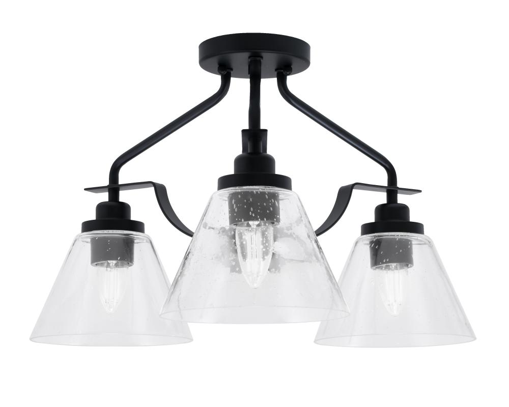 Odyssey 3 Light Semi Flush Mount In Matte Black Finish With 7 Clear Bubble Glass