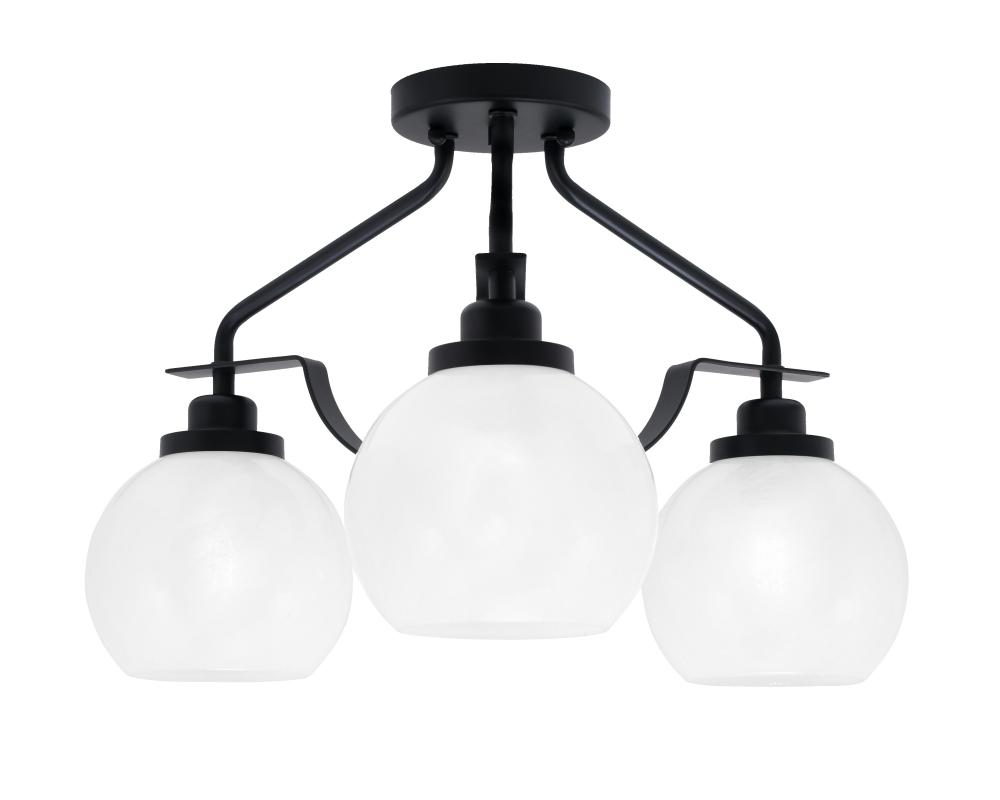 Odyssey 3 Light Semi Flush Mount In Matte Black Finish With 5.75 White Marble Glass