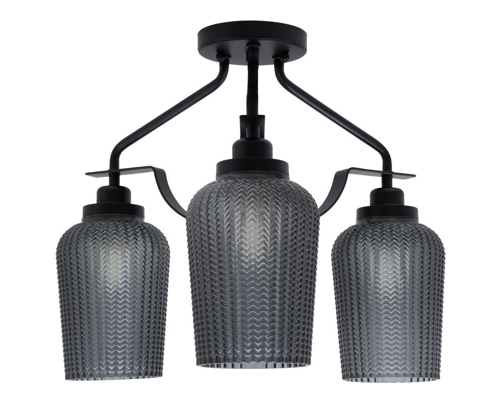 Toltec Lighting 2607-MB-4252 Odyssey 3 Light Semi-Flush Shown In Matte Black Finish With 5 Smoke Textured Glass