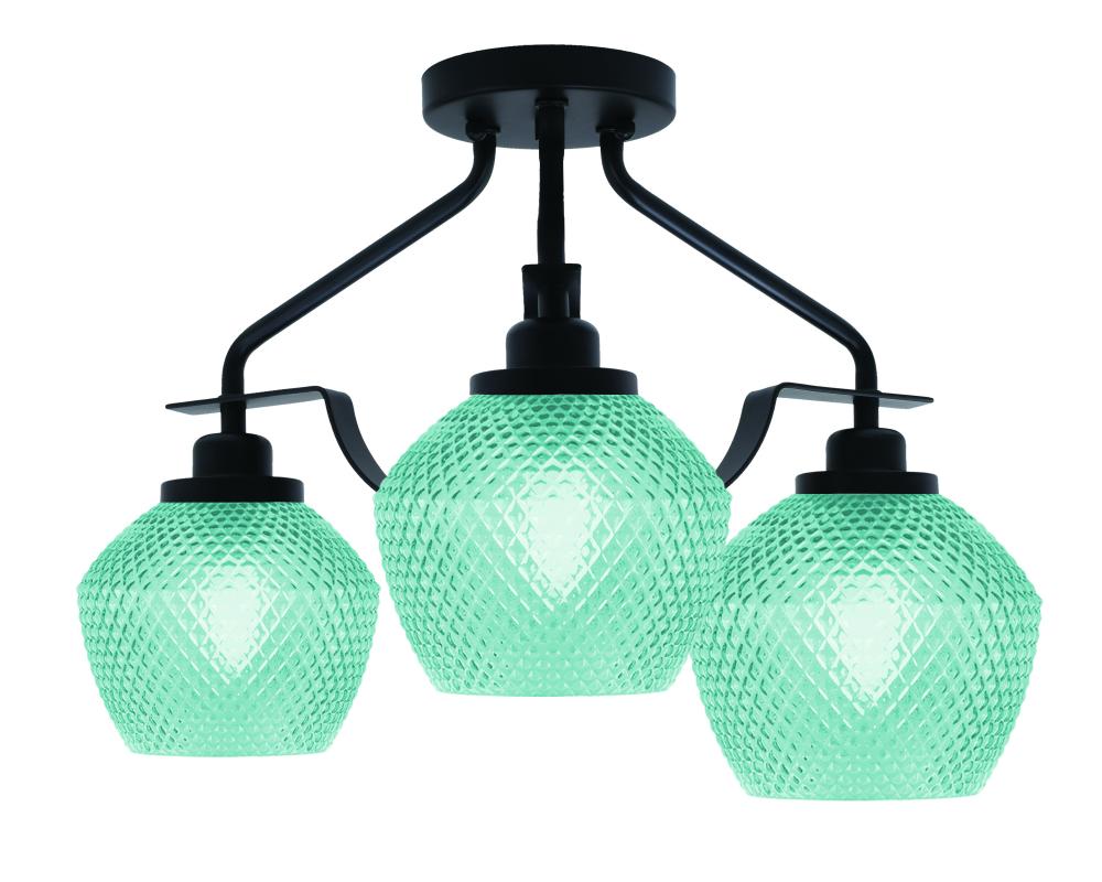 Odyssey 3 Light Semi-Flush Shown In Matte Black Finish With 6 Turquoise Textured Glass