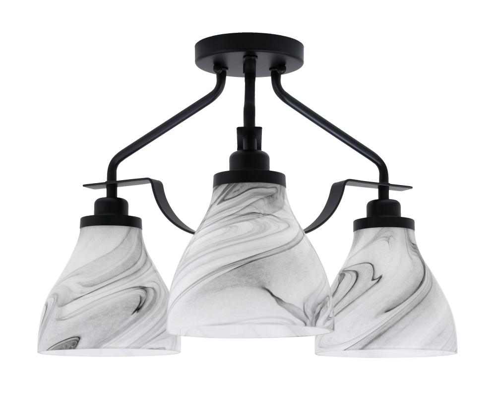 Odyssey 3 Light Semi Flush Mount In Matte Black Finish With 6.25 Onyx Swirl Glass