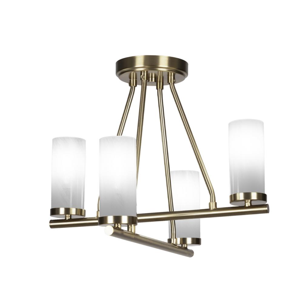 Trinity 4 Light Semi-Flush Shown In New Age Brass Finish With 2.5? White Marble Glass