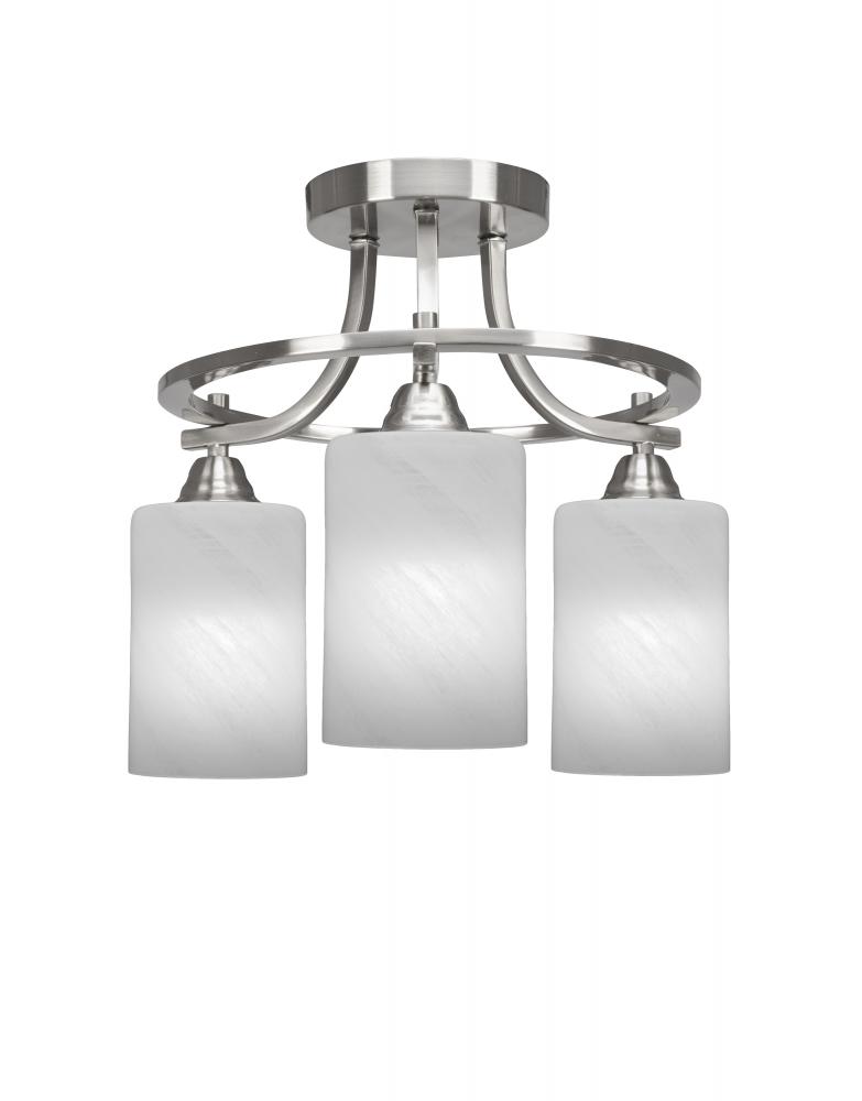 Paramount 3 Light Semi-Flush In Brushed Nickel Finish With 4 White Marble Glass