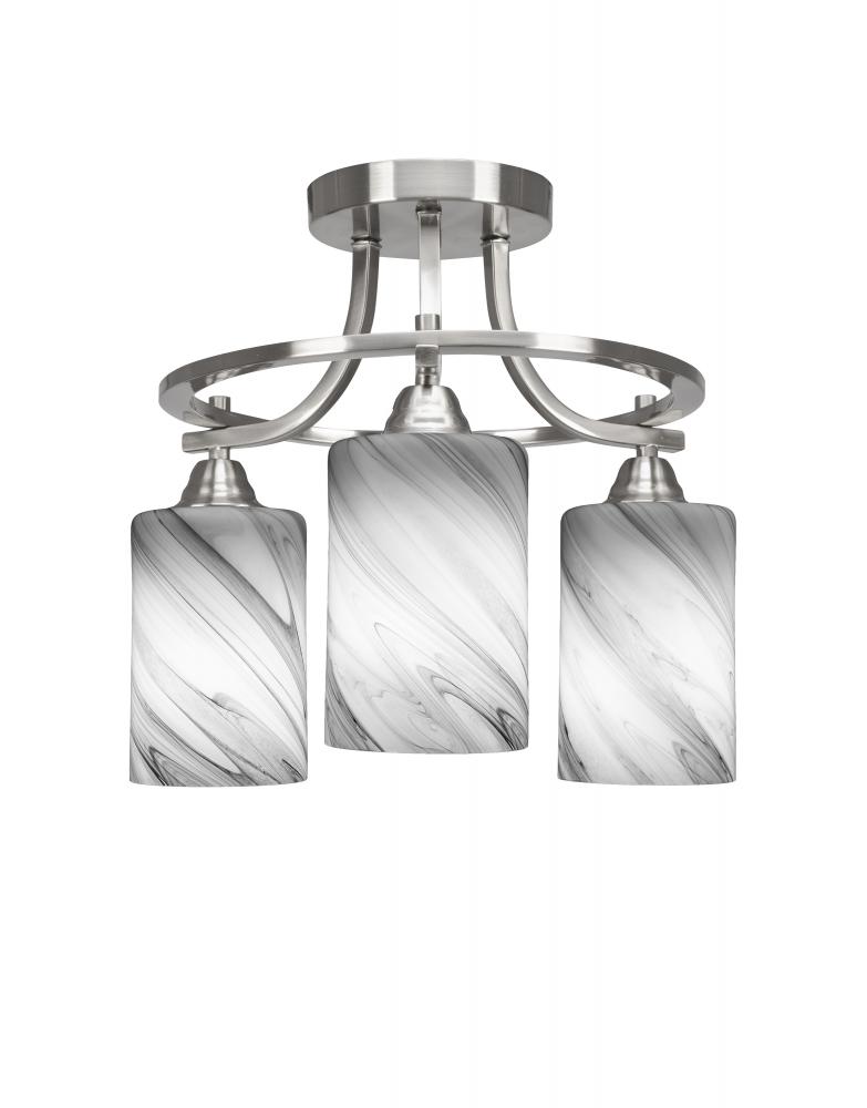 Paramount 3 Light Semi-Flush In Brushed Nickel Finish With 4 Onyx Swirl Glass