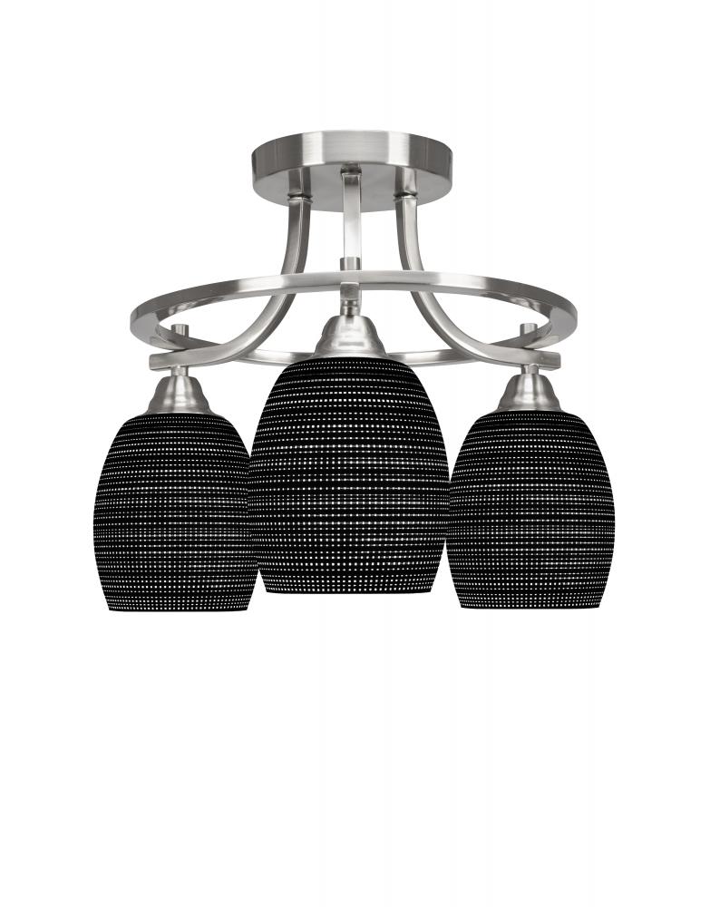 Paramount 3 Light Semi-Flush In Brushed Nickel Finish With 5 Black Matrix Glass