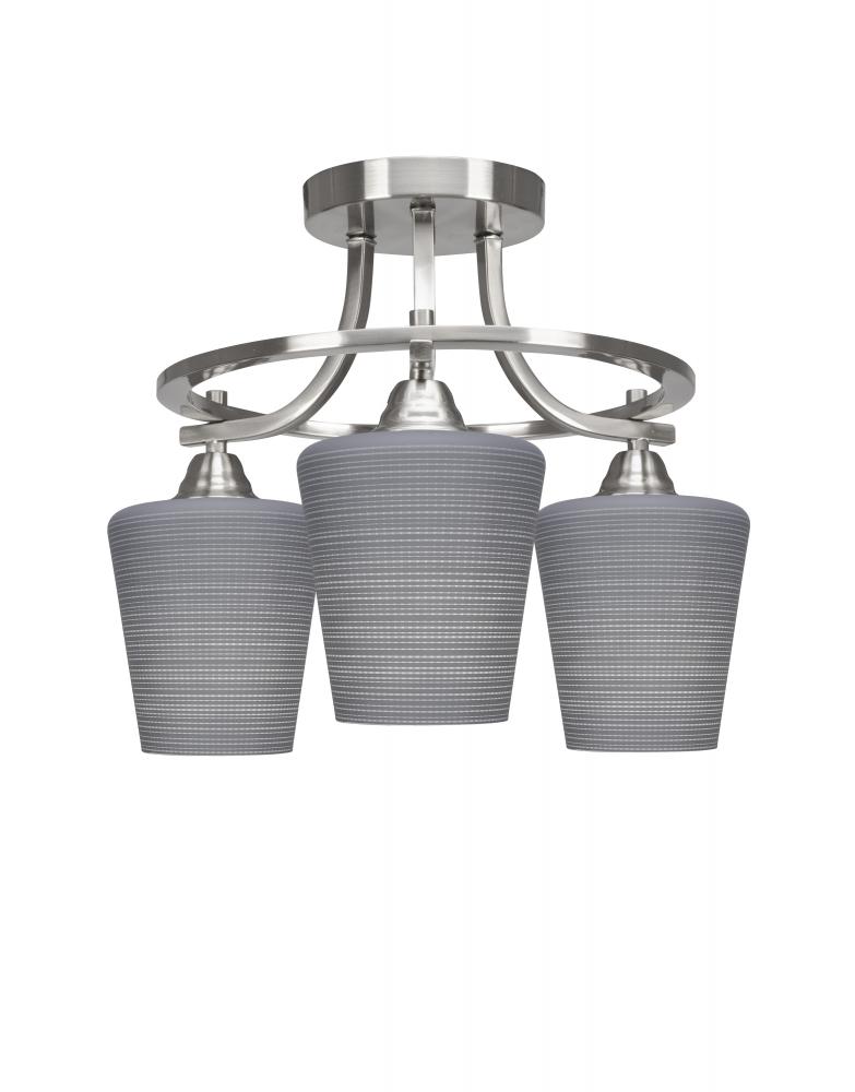 Paramount 3 Light Semi-Flush In Brushed Nickel Finish With 6 Gray Matrix Glass